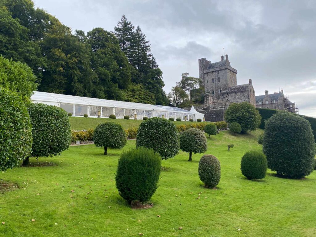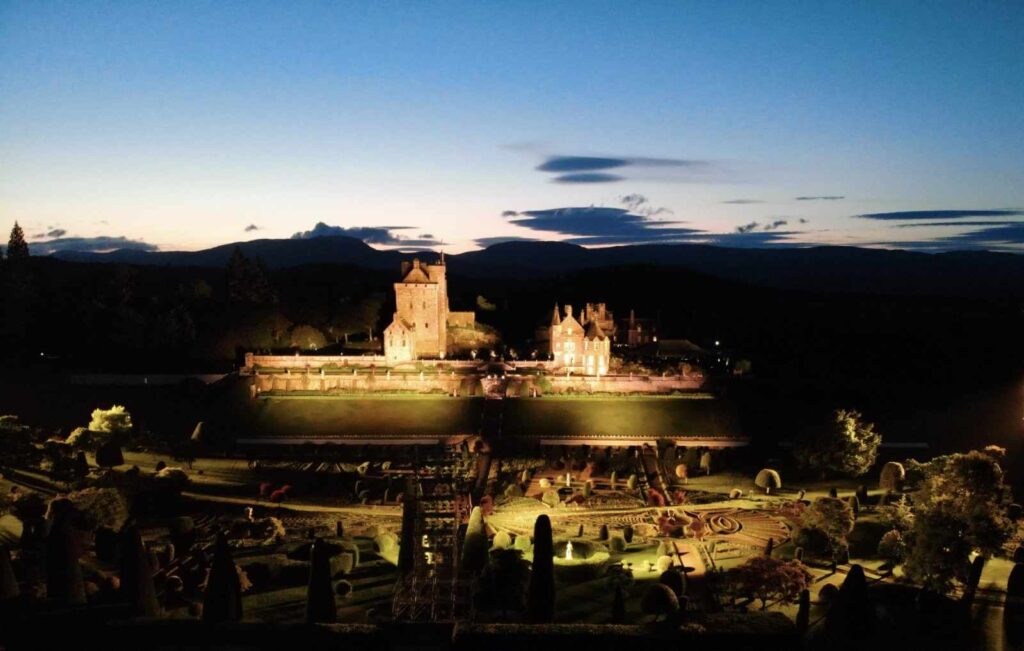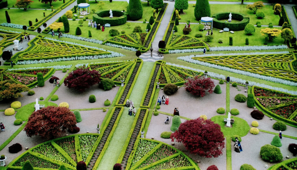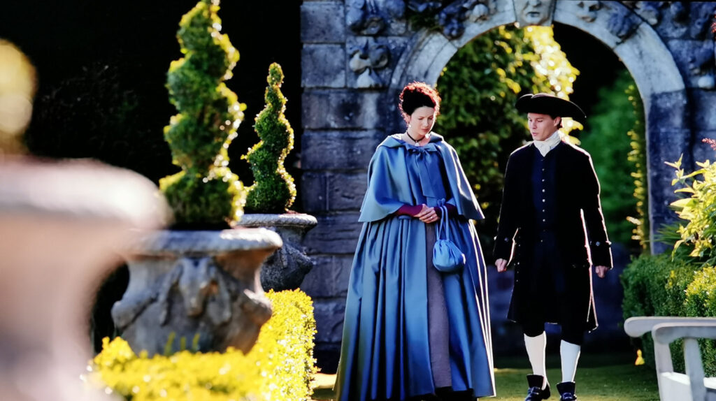 Drummond Castle Gardens or the Gardens of Versailles? We stood in for the opulent French gardens in Outlander Season 2. The formal Italian parterre style with its sculpted hedges and intricate geometric patterns closely mirror the style of the French Royal gardens. Outlander fans continue to venture here from all around the world, looking to relive Claire and Jamie’s experience at the French Royal Court!