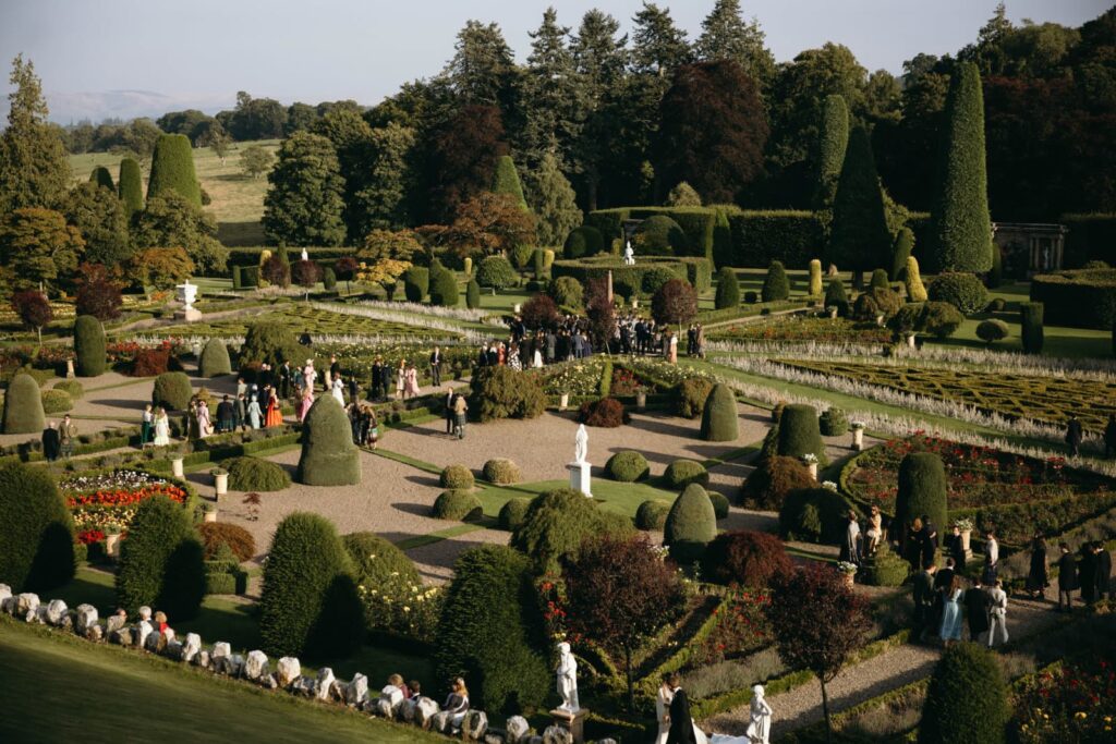 Emerging from the verdant Perthshire countryside, Drummond Castle Gardens is a vision of manicured lawns and striking symmetry set against the dramatic backdrop of the Scottish Highlands. It is unsurprising that we have caught the imagination of wedding parties, location scouts and international fashion brands.